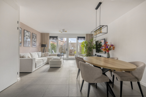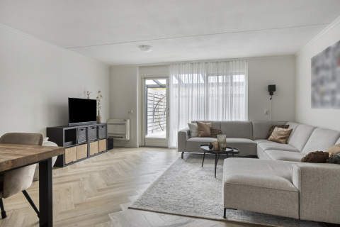 De woonkamer en keuken vormen samen een woonruimte van 35,6 m². De woonkamer (22,6 m²) heeft grote ramen aan de voorzijde, waardoor er prettig daglicht binnenkomt. Je kunt hier eenvoudig een ruime zithoek maken waar je kunt ontspannen, televisie kijken of bezoek ontvangen. Er is ook ruimte voor extra kasten of een dressoir.